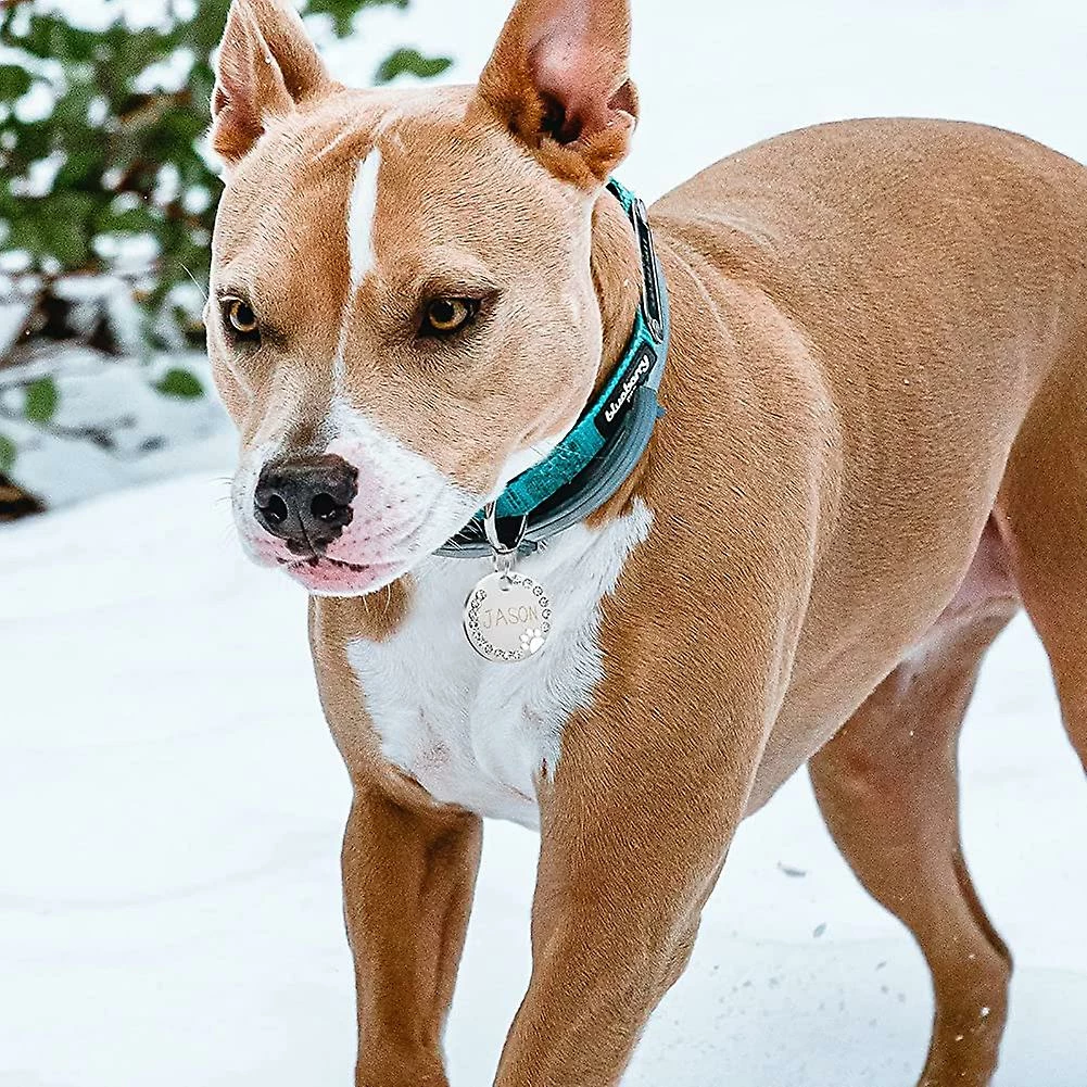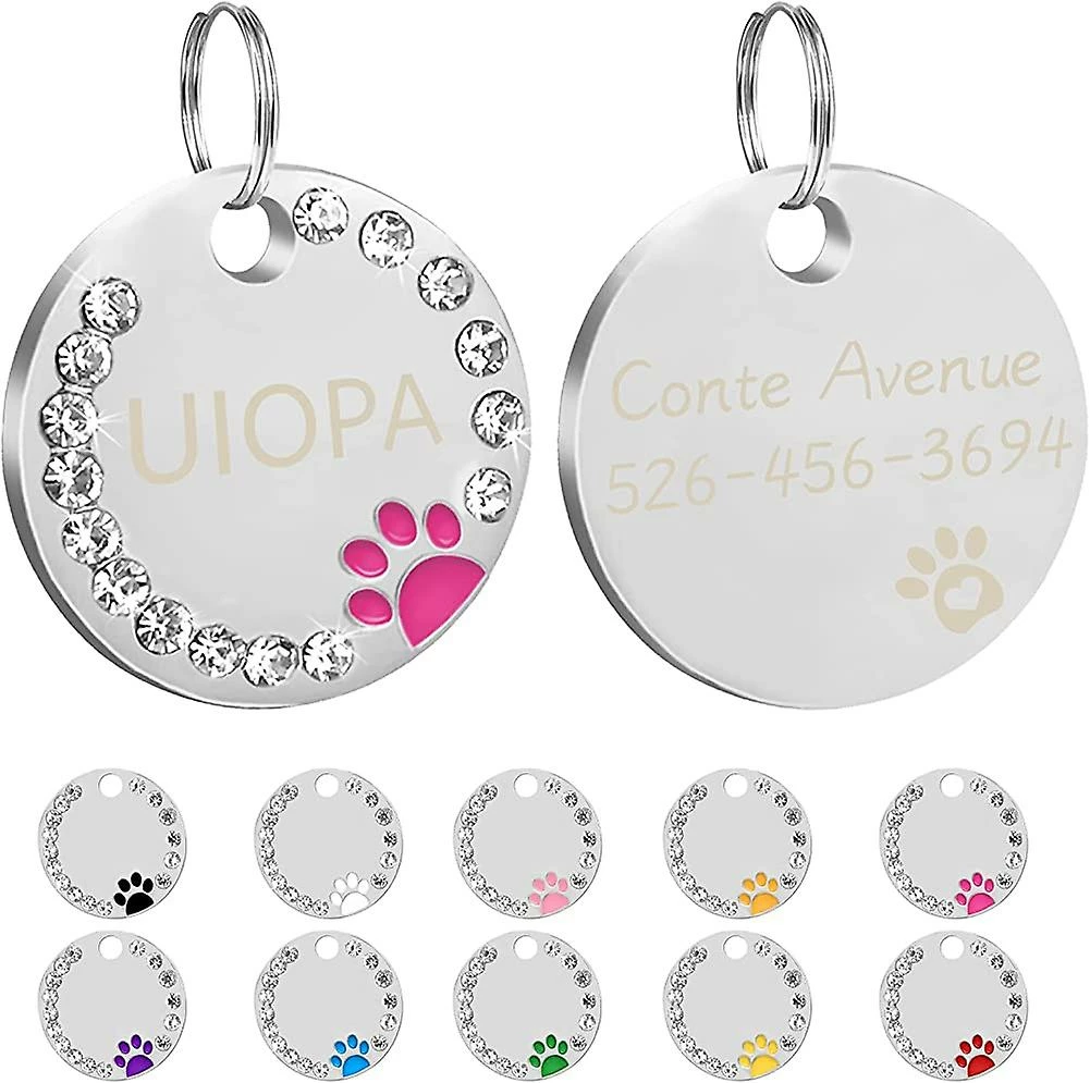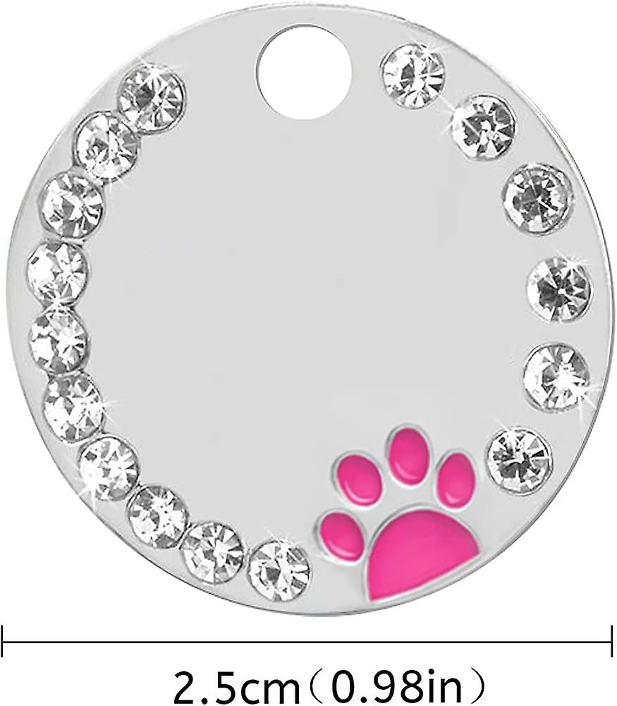 2-Pack Dog Tags: Étiquette de nom de chien ronde en alliage de zinc. Léger mais robuste. La façade est décorée de strass. Imprimé avec une belle finition de patte et apporter plus de joie à votre animal de compagnie. Vous avez besoin d’une plaque d’identité comme celle-ci. Pour que vos animaux de compagnie ne se perdent pas.