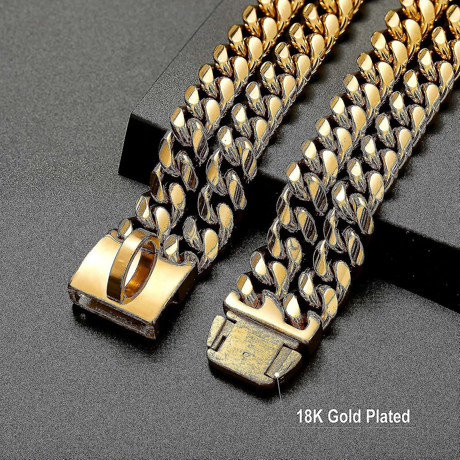 Dxn Charme Plaqué Or 18k 24mm De Large Robuste Robuste Cubain Chain Link Dog Collar Avec Boucle En Acier