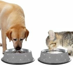 Unbranded Strass Brillant En Acier Inoxydable Pet Bowl Dog Cat Feeder, 640ml-rose