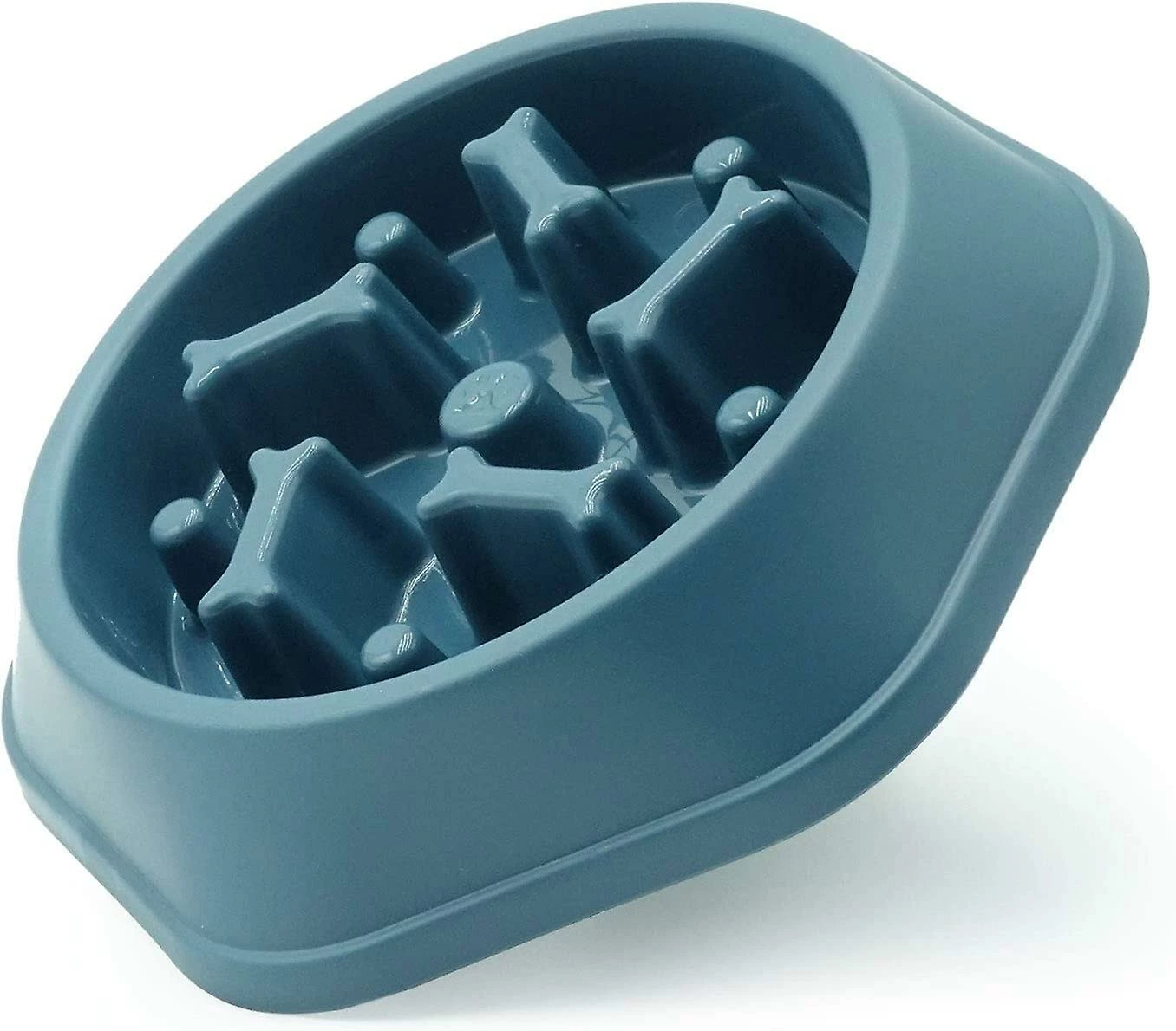 Help with Proper Digestion This design slow feeder dog bowl solve the common issues related to fast-eating dogs, such as bloating, choking, regurgitation, and obesity. Our slow eating bowl is both fun and challenging,engaging your dog while eating and effectively slow down dog’s eating time by 3X-5X.