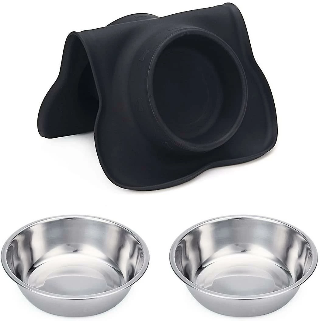 Fairry Pet Dog Bowls 2 Bols Pour Chiens En Acier Inoxydable, Bols D’alimentation Alimentaire, Noir