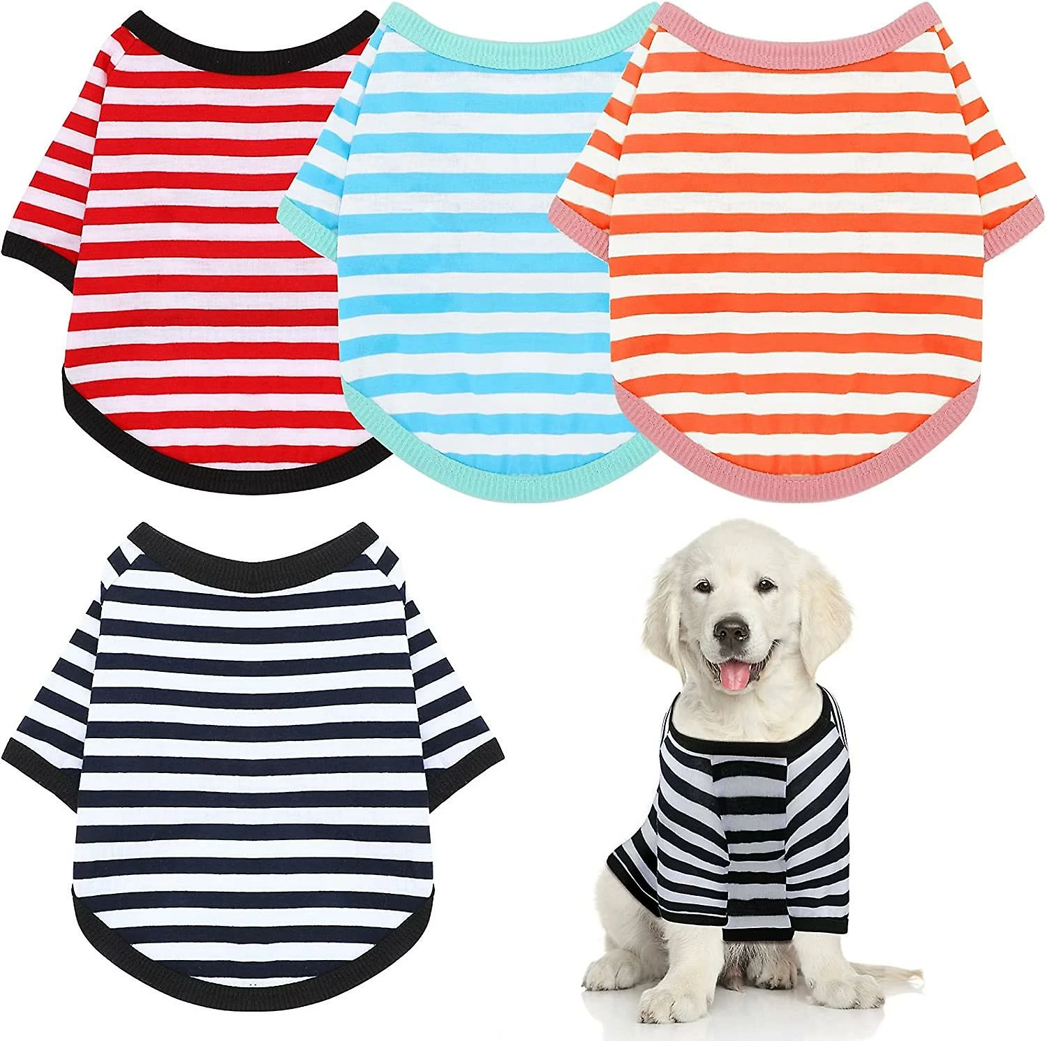 Giveuphesit 4 Pièces Chemise De Chien Petit Chien Rayé T Shirt Pet Apparel Puppy Sweatshirt Dog Vêtements Pour Chiens De Petite à Moyenne Taille