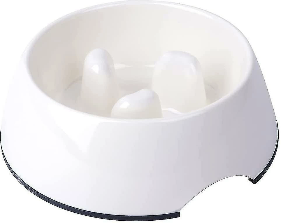 Super Design Anti-Gulping Dog Bowl Slow Feeder, Interactive Bloat Stop Pet Bowl for Fast EatersSlow Feeder for Improving Digestion – Dog cat bowl for fast eaters, make mealtime last up to 5x longer, prevents risk of gastric dilatation volvulus or Bloat and indigestionMelamine Dog Bowl – Made of food grade melamine material that are BPA, PVC and phthalate free, scratch-resistant and high gloss(which cant be seen in other plastic bowls), acid and alkali corrosion resistance, dishwasher safeHeavy and No Skid – In comparison to other materials such as ABS material and plastic, melamine material is more heavy for the size to reduce tipping over, rubberized bottom reduces skidFit For All Types of Food – Kibble or canned foodSmall Medium Dog Cat Dish – Suitable for small medium dogs and cats between 6.6-19.8lbs, Capacity: 300ml, Hold 1.5 Cup particle Food, Base Diameter: 7 inches, Bowl Diameter: 5.5 inches, Height: 2.5 inchesSUPER DESIGN SLOW FEEDER BOWL – GOOD TO DOGS HEALTHMany dogs are facing this problem – they eat too rapidly like a vacuum cleaner, eating up all the food less than a few minutes.Some pet parents may think this is not a big problem.But actually, eating too fast is a great threat to dogs health