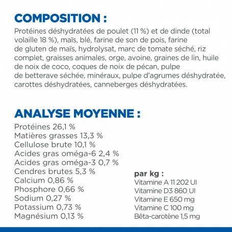 - Contiennent des acides gras Omu00e9ga-6 et Omu00e9ga-3 pour une peau saine et un pelage luxuriant