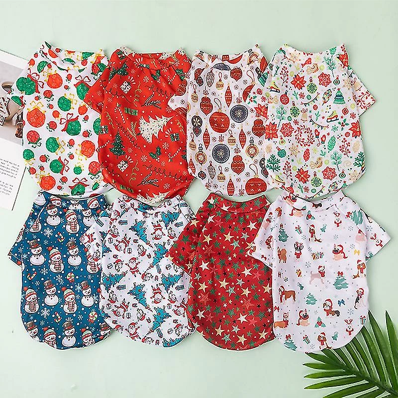 Jccc Style De Noël Pet Dog Clothing Puppy Printed Vest Short Sleeve T-shirt Pour Petits Chiens Moyens Chihuahua Yorkshire Pet Costume