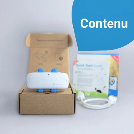 nLe pack comprend : la balise GPS, un cu00e2ble USB et un clip en caoutchouc pour fixation.