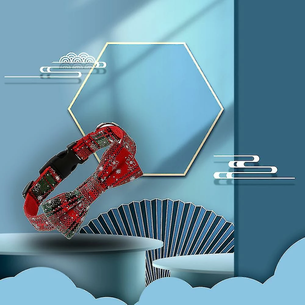 Mike Dog Cat Collar Bowtie Buffalo Check Plaid Christmas Winter Snowflake Pet Collargreen_w