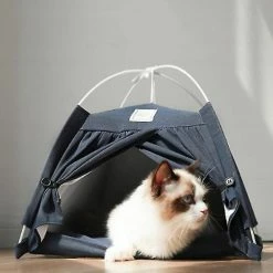 Unbranded Pet House Cat Dog Sleeping Bed Nest Puppy Warm Cushion Semi-closed Kennel Blue S