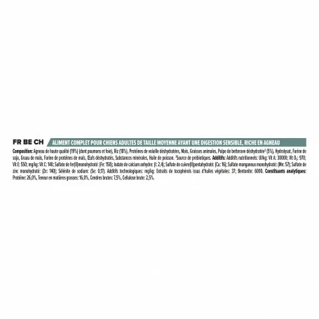 PURINA PRO PLAN Medium Adult Sensitive Digestion Riche en Agneau contient OPTIDIGESTu2122, une combinaison de nutriments avec des teneurs spu00e9cialement adaptu00e9es aux chiens adultes de taille moyenne ayant une digestion sensible. Si votre chien souffre du2019une digestion sensible, essayez ces croquettes et aidez-le u00e0 soutenir sa bonne santu00e9 globale.