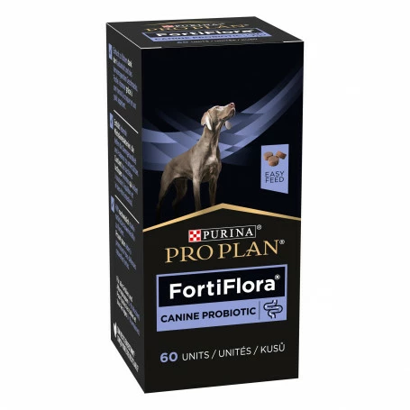 PURINAu00ae PRO PLANu00ae VETERINARY DIETS FortiFlorau00ae Chien est un supplu00e9ment probiotique spu00e9cialement formulu00e9 pour les chiots et les chiens adultes. Il contient une souche unique de bactu00e9rie bu00e9nu00e9fique, SF68u00ae, qui contribue au bon fonctionnement et u00e0 l’u00e9quilibre de l’intestin et au renforcement des du00e9fenses naturelles.