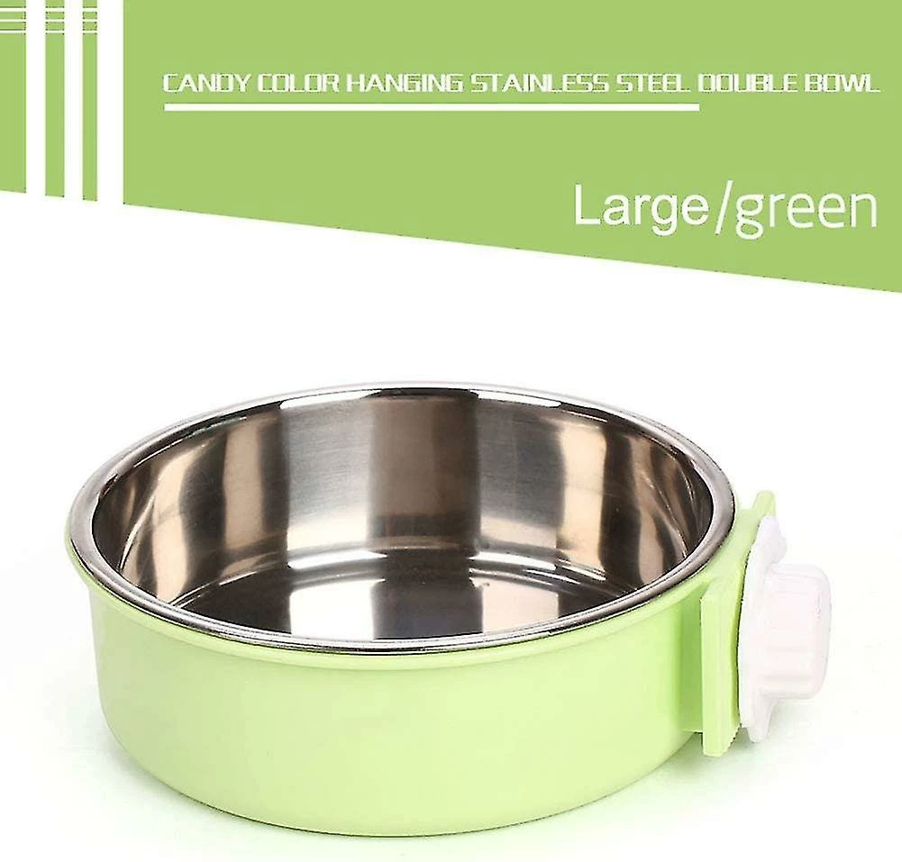 Color:Green RoundMaterial:Stainless SteelTarget Species:Cat, DogMATERIAL & SIZE: Crate dog cat bowl is made of stainless steel inner bowl and safety and environmental protection PP outer bowl. The square inner bowl size: small: (5.9″*5.9″*2.0″)Suitable for dog, puppy, cat, rabbit, bird bath and small animals.DESIGN: This dog feeding bowl attach directly to the cage for easy feeding. Or you can use it as a basic bowl. There is a plastic fixed bowl and metal bowl in one set, you can also separate them into two bowls.IDEAL BOWL: Light and handy stainless steel bowl for dog crate, The dog crate bowl design for prevent pet knocked the food or water, it is easy to hang not too heavy to cause dog cage deformation.EASY TO USE: This crate bowl is removable for easy clean up, fill up or remove. You can make the plastic bow fixed to the cage and just remove the stainless steel bowl.HOW TO INSTALL: When installing the hanging dog bowl is a two-in-one bowl, first loosen the white nut of the pet bowl, put the plastic screw part into the gap between the two iron wires of the dog cage, tighten the white nut, and then finish.