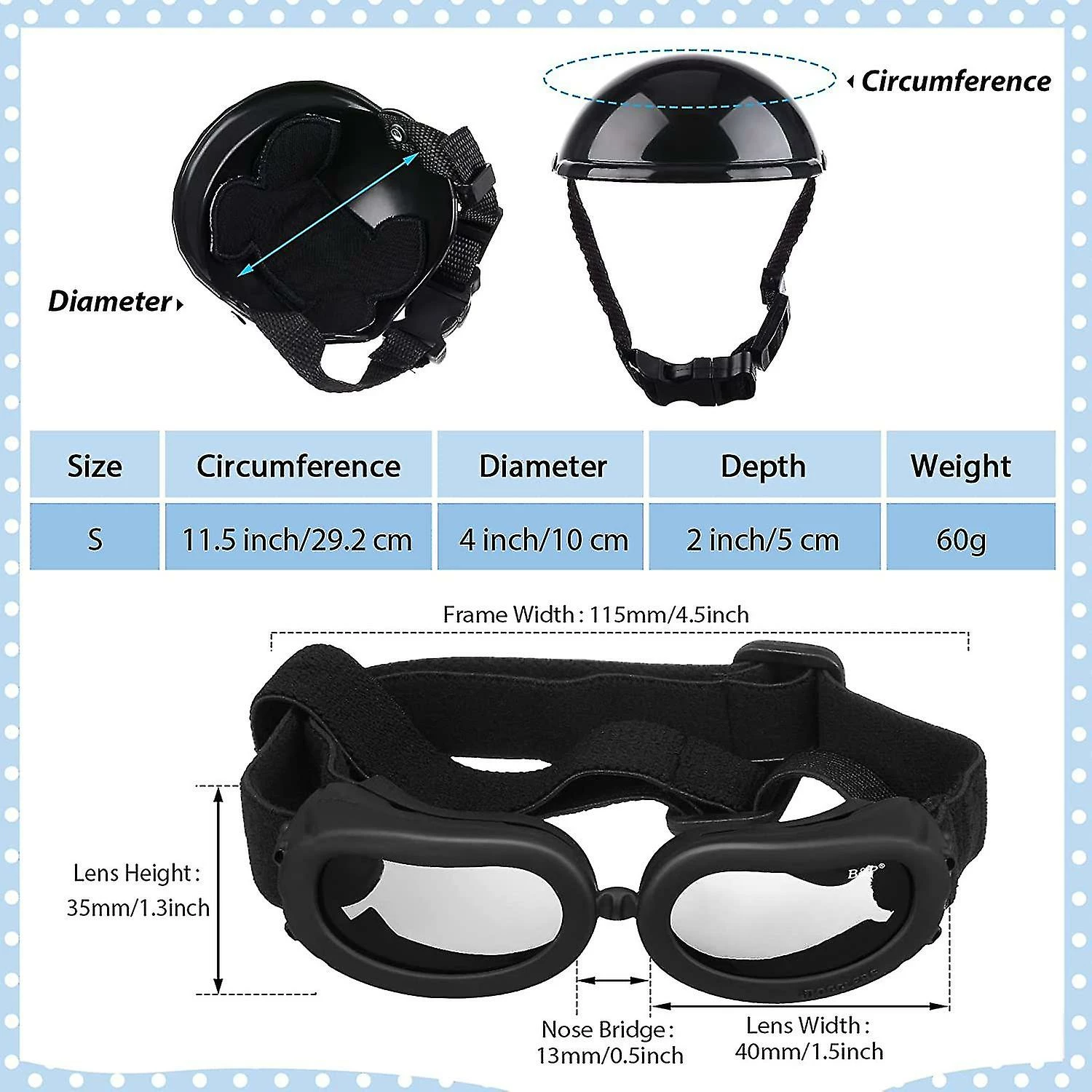 Tiny-witch Petit Chien Casque Lunettes Uv Protection Doggy Lunettes De Soleil Pet Dog Lunettes Moto Hard Safety Hat Avec Ceinture Réglable
