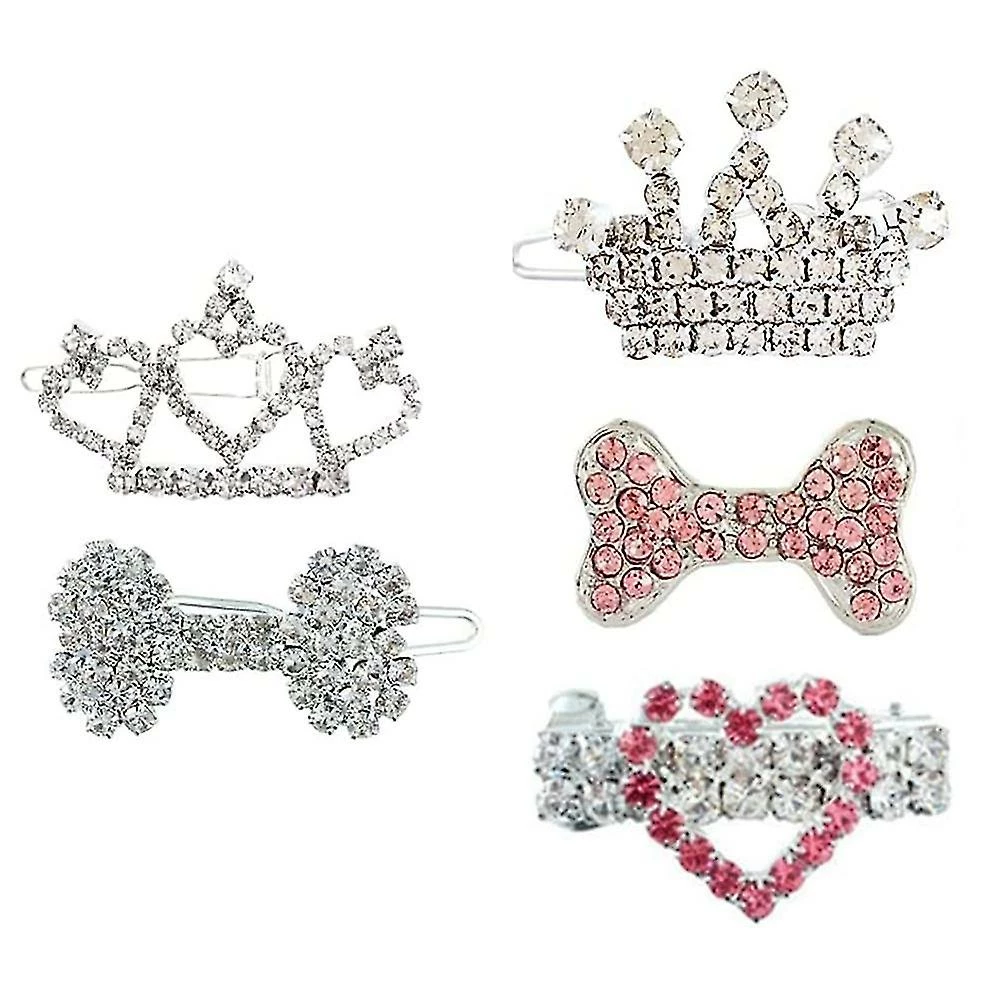 Unbranded 5pcs Puppy Crystal Strass Hair Clip Coiffure Hair Accessoires Dog Headwear Pet Grooming Pro