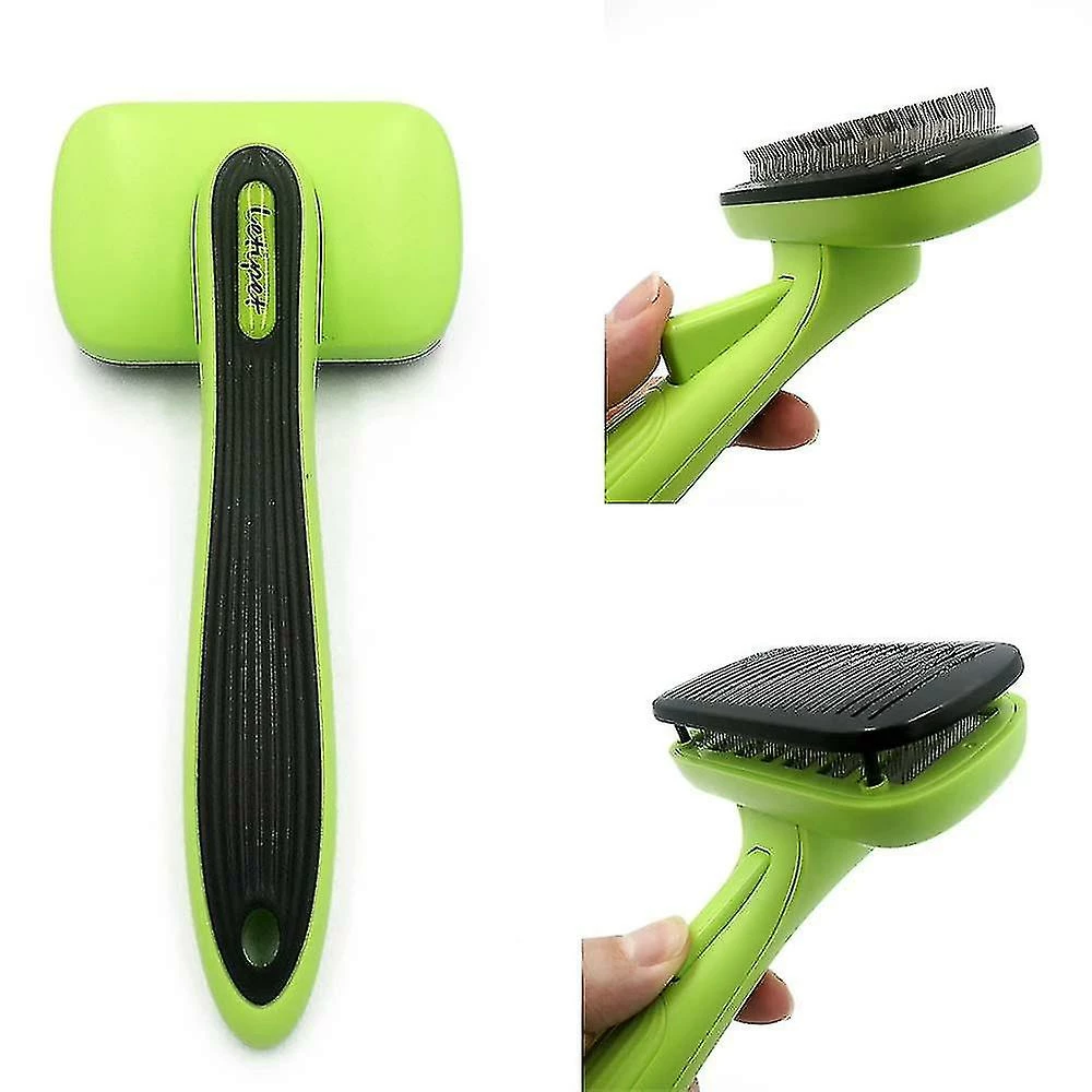FUNCTION AND BENEFIT: Slicker Brush gently removes loose hair, eliminates tangles, knots, dander, and trapped dirt from pet or mat. It works great on dogs and cats of all sizes and different hair types.Dog brush is also beneficial for preventing skin disease and increasing blood circulation.EASY TO CLEAN: Simply click the button to extend the bristles. Then click the button again, withdrawing the bristles, and the loose hair WIPES right offWith our super user friendly design, cleanup is a breeze. You have found your brush.WORKS ON MOST HAIR TYPES: Short, medium, long – haired, thick, thin, curly, one big tangle knot, this pro groom brush handles it allPet brushing feels so good it’ll make a kitty purr and a puppy pant.COMFORTABLE AND DURABLE: Our grooming Brush is specifically designed with a comfort silicone grip that wont slip which prevents hand and wrist strain no matter how long you brush your pet. Both you and pet will not only look good but feel great too