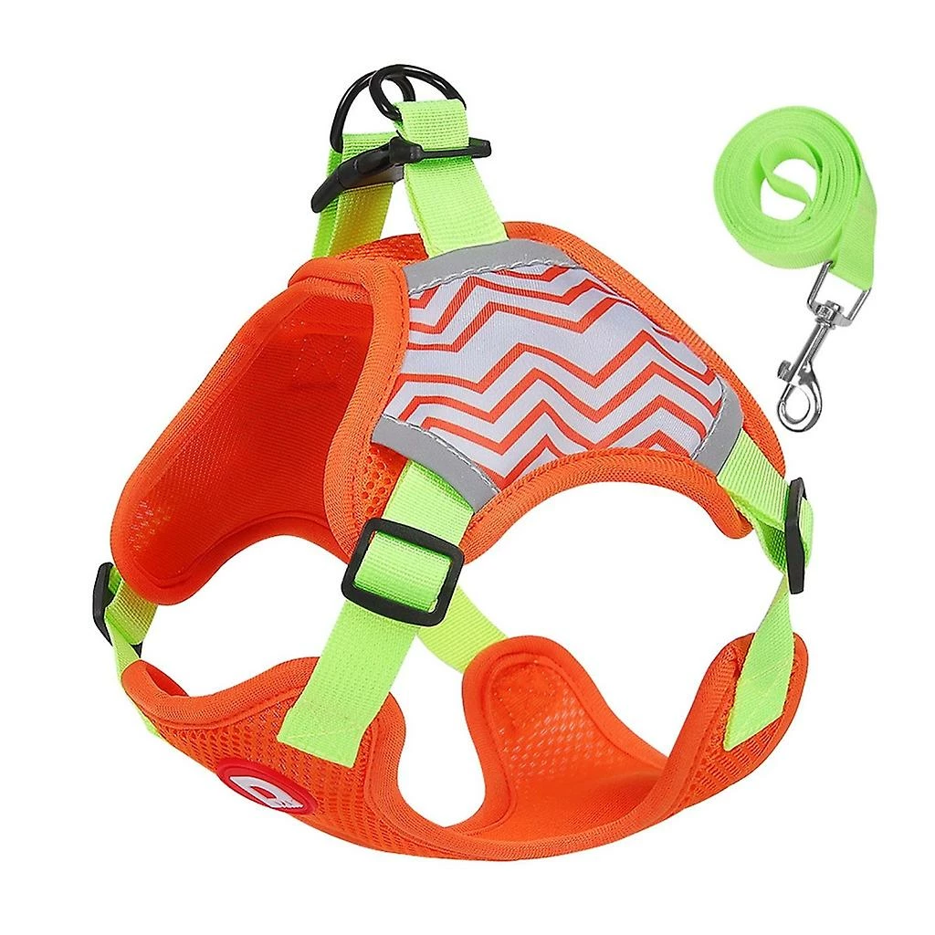 Dog Chest Leash: The vest with fashion stripe pattern, breath-able vest, skin friendly, dog leash use upgraded double clip ensure safety to use and not easy loose, hook and loop fastener design which easy to wear for your pet dog & cats, suitable for four season.
