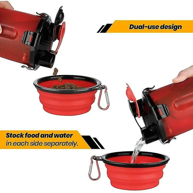 Folding Dual UseThere are two chambers in the dog water bottle, one for dry food and the other for water. dog water bottle comes with two bowls, so the food and water in dog bottle can be better fed to pets. As long as the water dispenser outer bowl gives water to your furry friends, you don’t have to worry about spreading bacteria. water for dog makes sure there is no water leakage and you don’t have to worry about getting the travel bag wet; it also protects food from air and water pollution, keeping food fresh. And dog bottle is also equipped with an insulation net, which can prevent dog water dispenser from leaking into the water injection area during use. Precise measurementThere is a scale of Two sides of the dog walk water bottle, which can supply your dog with food and water precisely when using dog water dispenser, to ensure your dog can finish eating without waste. No more pouring extra things into dog bottle again Large Capacity and Portabledog bottle can store 250mA of food and 350mA of water, which is exactly the energy needed for a dog adult comes out once, and dog water bottle is a large slot design, which can also be hung on a backpack. Convenient for kids and adults to carry walking dog water bottle Safety and environmental protectionDog water bottle is made of PP and TPE, and the water bowl is made of food standard organic silicon. The eco-friendly dog water dispenser is ideal for feeding pets. In addition, each part of cat backpack is detachable