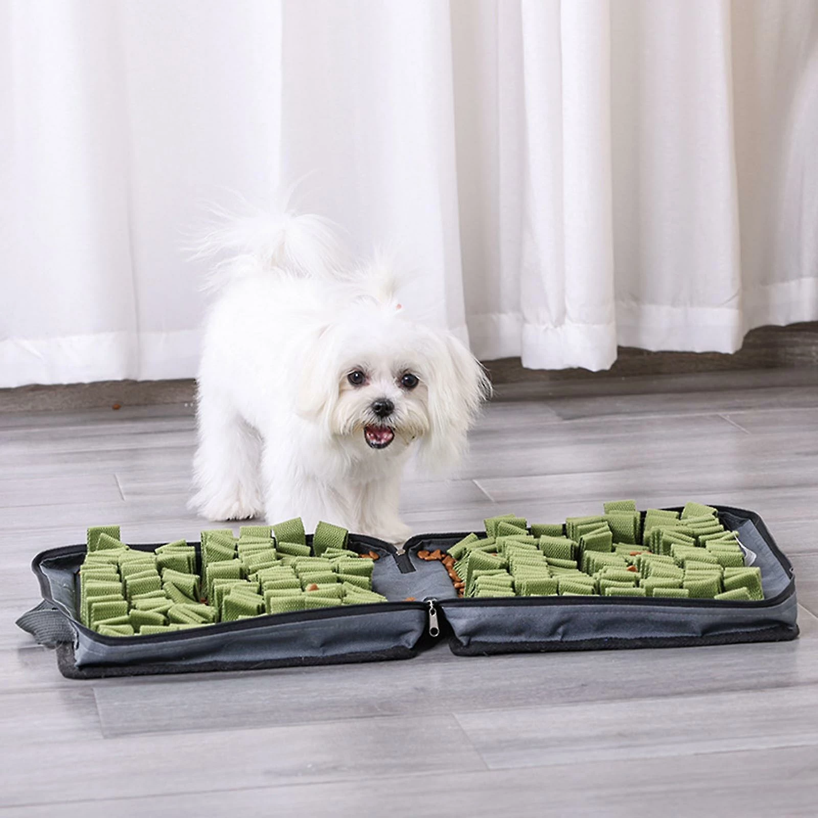 This jigsaw mat allows your dog to sniff through the grass to find hidden food or snacks. This nose training game helps pets release for extra energy and lose weight. It also keeps them busy and prevents destructive behavior.