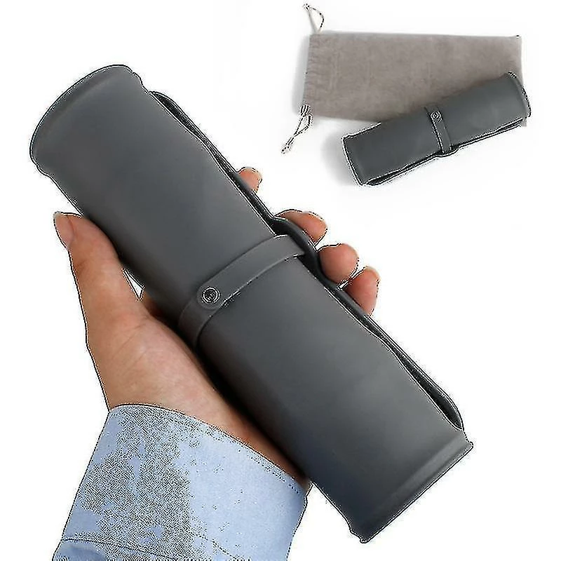 Et Folding Double Bowl Velvet Bag Dog Bowl(Grey)