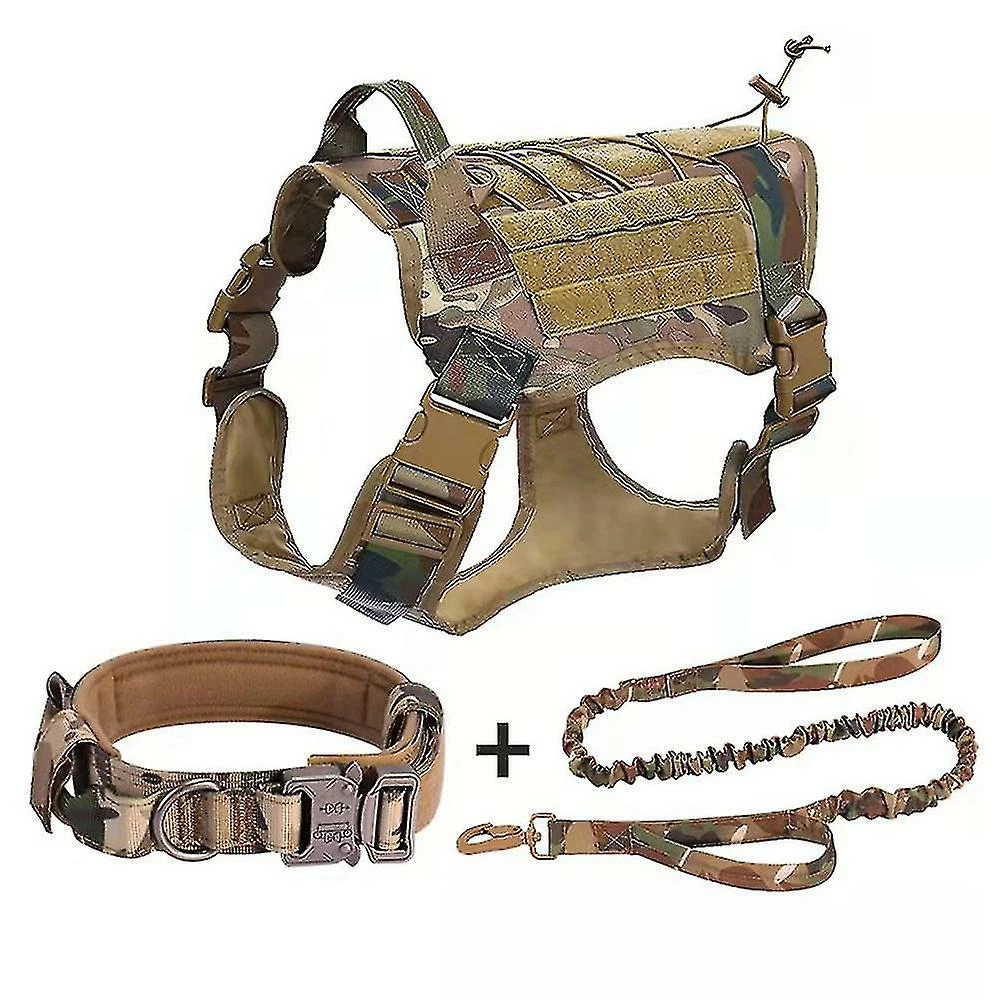 5.Complete tactical dog training Harness set: 1 pack no pull dog training harness with handle and metal buckle, 1 pack heavy duty dog collar, 1 pack strong bungee dog leash.