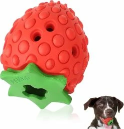 STRAWBERRY FLAVOR The sweet strawberry flavor and unique strawberry shape can fully arouse the dog’s interest. 8mm thickness makes the dog toy more resistant to biting and more suitable for large, aggressive dog breeds