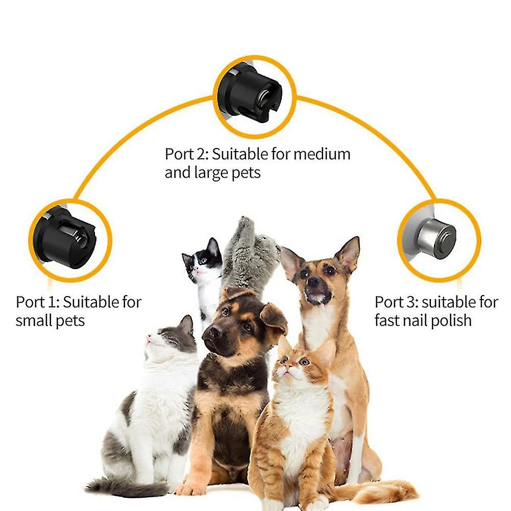 Features:Pet Grooming ToolNail grinding machine adopts diamond drill bit it is very gentle low noise and low vibration. There are 3 speeds to choose from 7000rpm 8000rpm and 9000rpm.2 LED LightsOur dog toenail grinder has dual LED lights which help you see claws clearly and prevent over-grinding or cutting. Light button to turn them on/off.3 Grinding HolesThere are 3 size openings in the grinder area you can trim your pet&