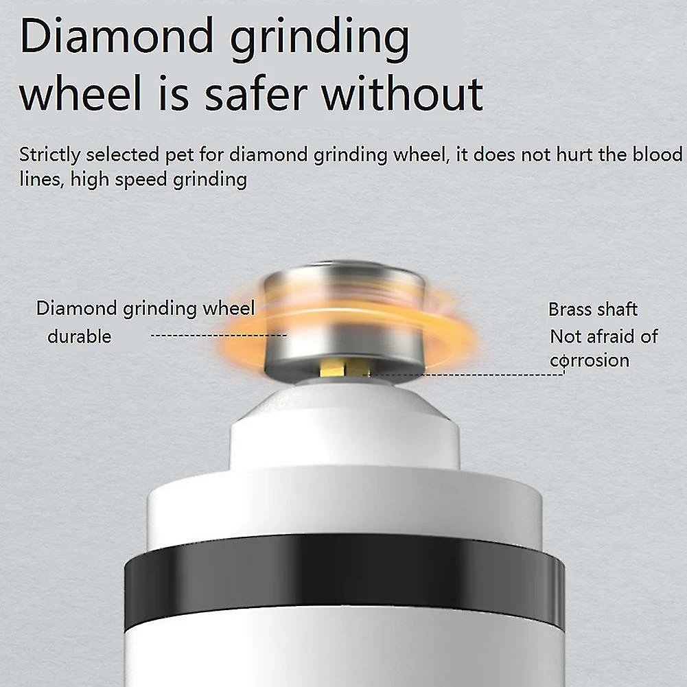 039;t be afraid of a sudden power outage.USB RechargeableThe cordless dog nail grinder has a built-in 2000mAh battery and recharge by included USB cable 4.5 hours charging time with up to 8 hours using time.Specifications:Material: ABSColor: WhiteLight color: WhiteSize: (Approx)(LxDIA) 15.9×3.5cm/6.26×1.38inchPower by: 1 x 2000mAh rechargeable battery (built-in)Charging time: 4.5HUse time: 8HPackage Included:1 x Pet Nail Grinder1 x Charging Cable1 x Cleaning BrushNote:1. Due to the light and screen difference the item&