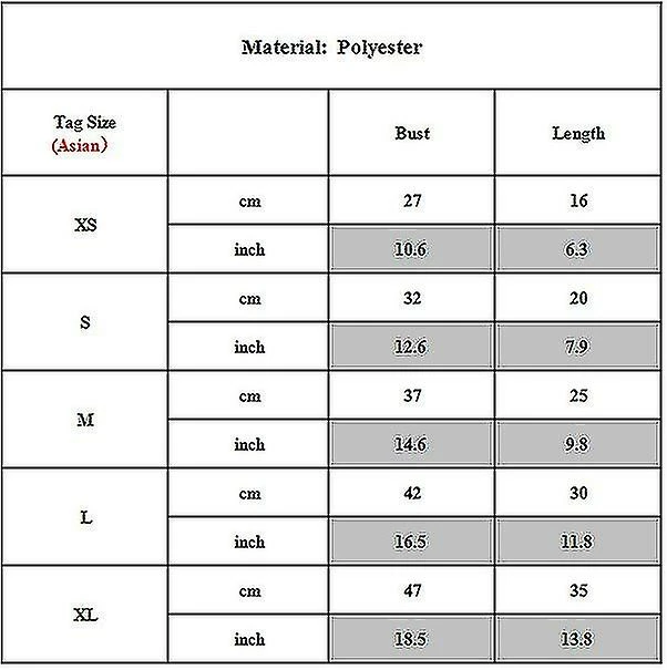 Pet Dog Cat Fleece Jumper Puppy Warm Sweater Coat Small Yorkie Chihuahua ClothesMaterial: PolyesterSize: XS/S / M / L / XL / XXLMeasurement in CMSize: XS, Bust: 27cm, Black length: 16cmSize: S, Bust: 32cm, Black length: 20cmSize: M, Bust: 37cm, Black length: 25cmSize: L, Bust: 42cm, Black length: 30cmSize: XL, Bust: 47cm, Black length: 35cmItems include: 1 X Dog clothesVery stylish pet sweaterVery comfortable and environmentally friendly.The soft and comfortable material keeps your dog warm and comfortable.The soft materail can keep your baby’s fur comfortable and warm in the cold winter.There are buttons on the front, which can be easily placed on the dog/pet;Comfortable and gorgeous; you and your favorite pet will love this dress