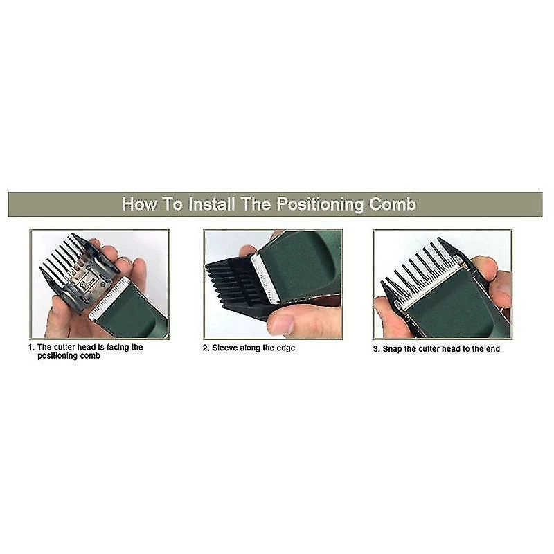 Easy to use, clean and adjust 1. Removal and installation 2. Easy to clean 3. Adjusting bladeThe 4th gear is suitable for all kinds of pet hairNumber of revolutions: 5500RPM, second gear 6000RPM, third gear 6500RPM, fourth gear 7000RPMUse time: 2-3 hours Fine-tuning gear: 0.8~2mm How to use: charging/using while chargingType: Suction pet color:GreenMaterial:plasticPackage Contents:1 x 4 x Limiting Comb1 x USB Charging Cable1 x Cleaning BrushOnly the above package content, other are not included.Note: Light and different displays may cause the color of the item in the a little different from the real thing. The measurement allowed error is +/- 1-3cm.
