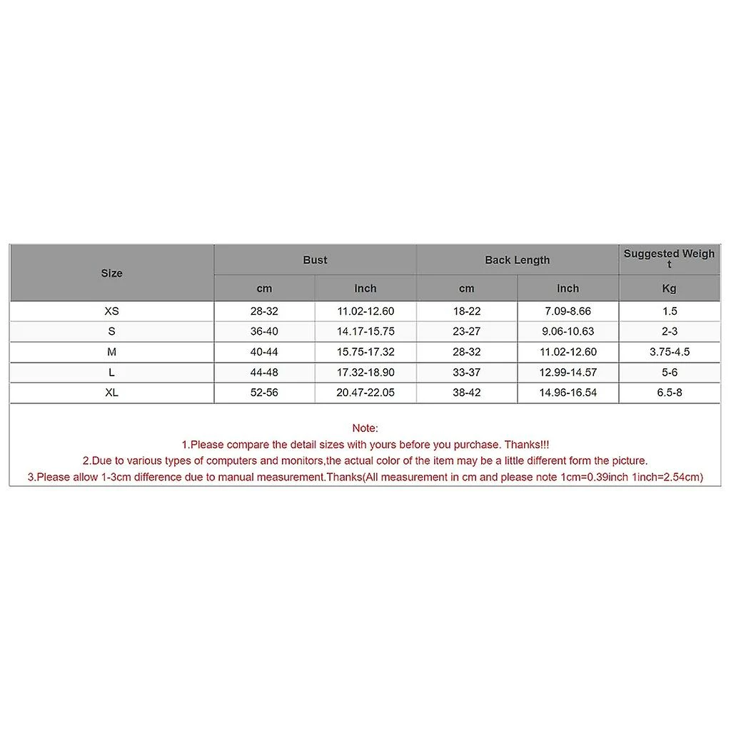 Size:XL Bust:52-56cm(20.47-22.05inch) Back Length:38-42cm(14.96-16.54inch) Suggested Weight:6.5-8Kg