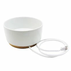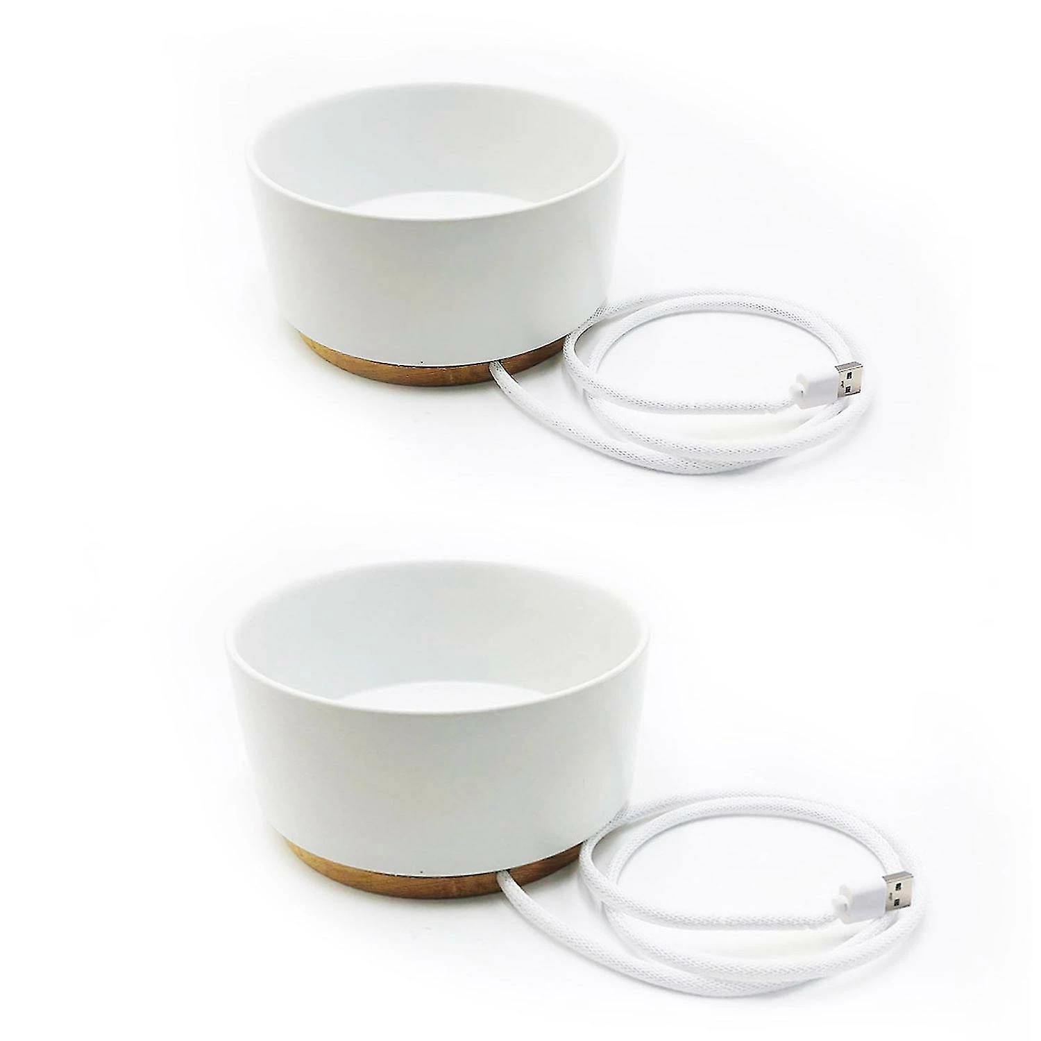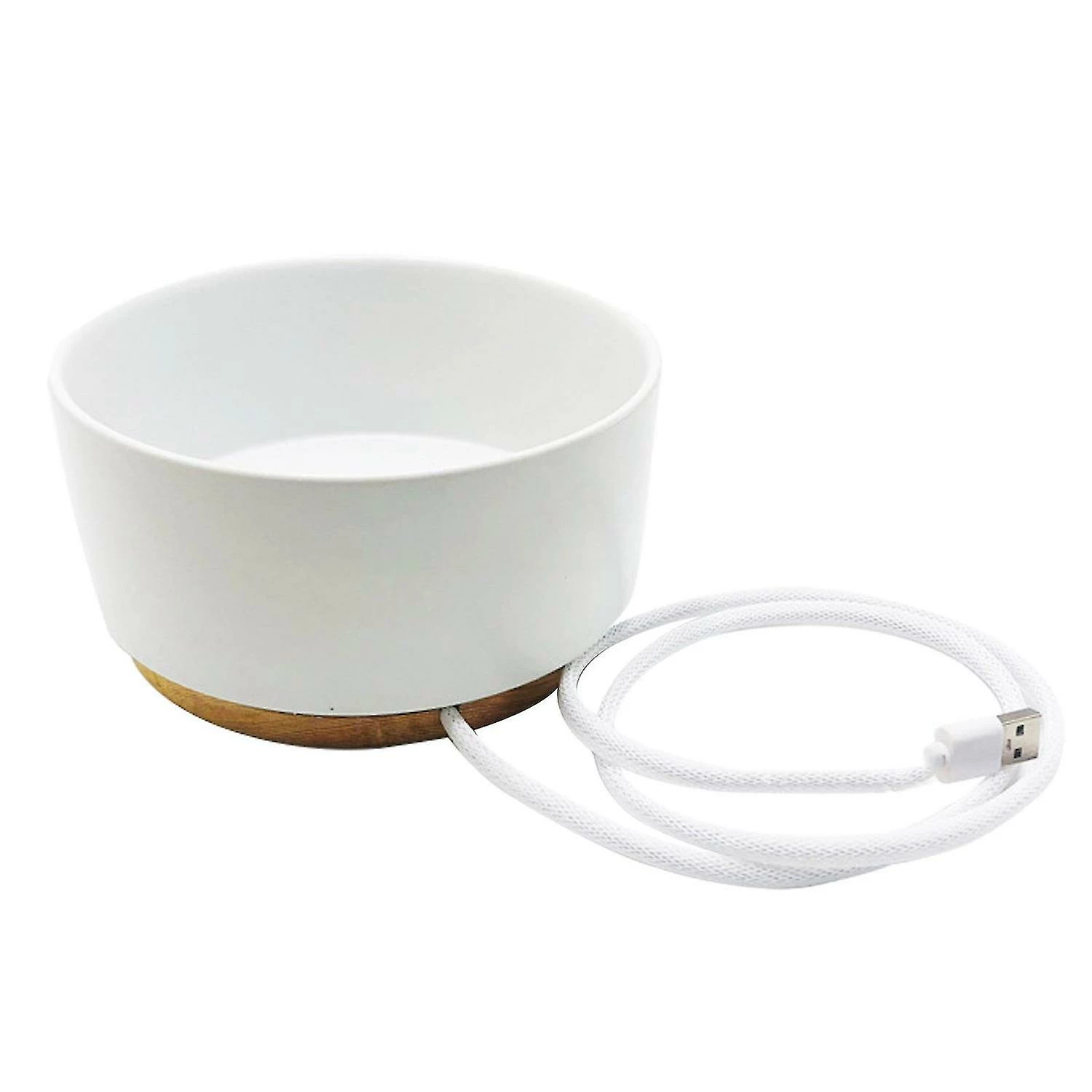 4. How to use: Plug in the 5V-USB, and the bowl start working, you can turn on and off as needed. The heating pet bowl keeps water temperature between 30 when on working.