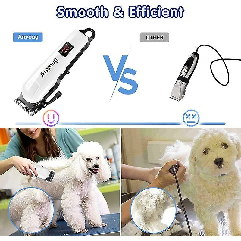 COMB ADJUSTABLE GUIDE COMB: The professional pet dog clipper has 4 adjustable guide combs in different sizes. Adjustable and precise guide combs provide a smooth cutting experience. Professional dog shears Easy to use, can cut the whole body, face, ears, soles and buttocks, including animals such as small and large dogs.