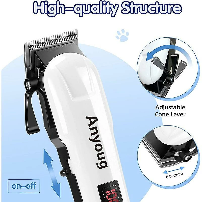 Premium Construction: This dog clipper features premium carbon steel blades, adjustable tapered shanks, and adjustable tapered shanks. ;switches. The adjustable taper shank allows for flexible blade adjustment and easy stack height adjustment, giving you superior cutting performance. The on/off switch allows the dog grooming clipper to remain off for long periods of time.