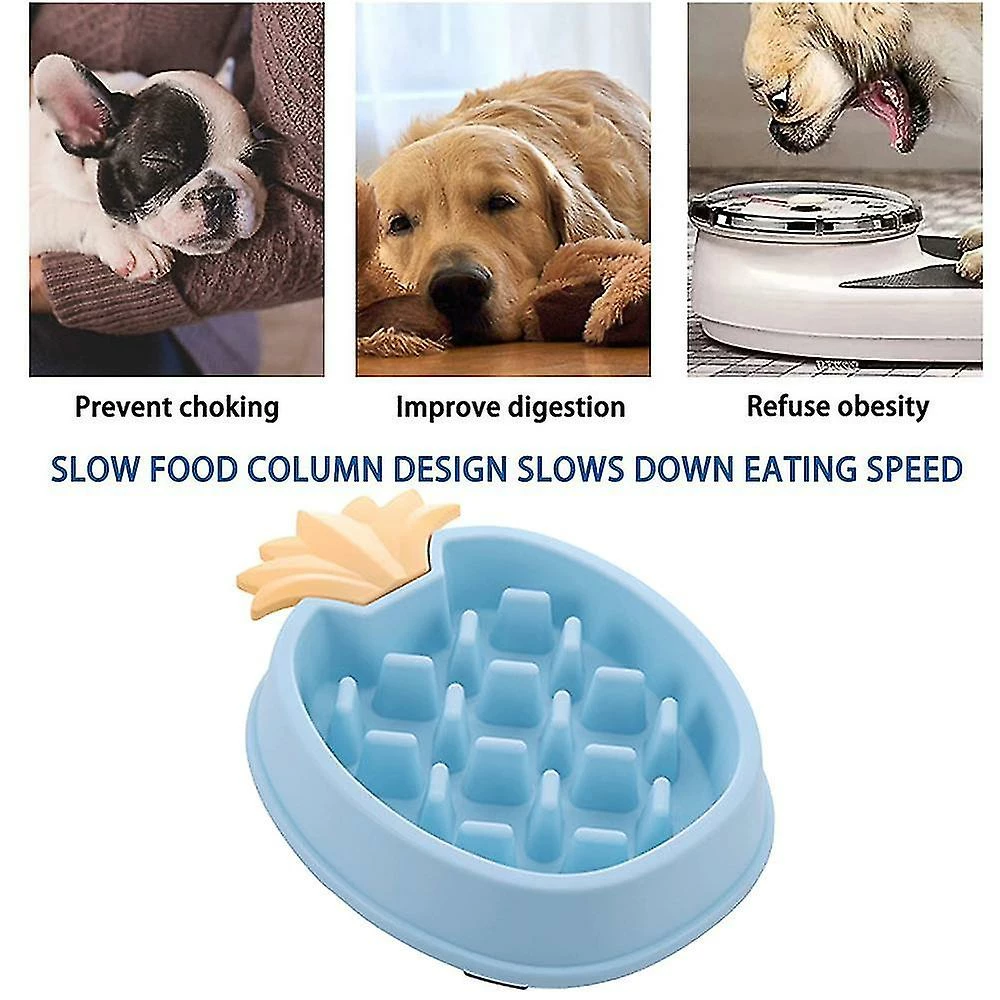 1. The raised parts in the bowl separate the food when the dogs eating, which slows down its eating speed effectively. Note: Not suitable for Cats and Short-mouthed animals.