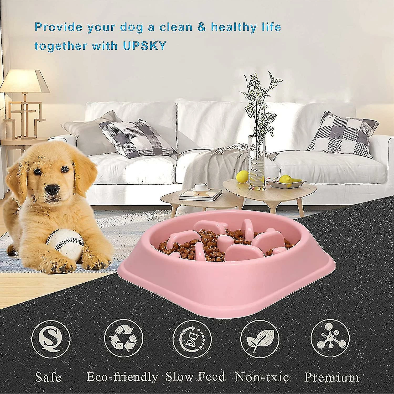 Slow Feed Concept: The slow dog feed concept is advocated by experts and veterinarians widely. This UPSKY slow feeder dog bowl makes it come true. The raised parts in the bowl separates the food when dogs eating, which naturally improve digestion by allowing dogs to forage for their food.Using Qualified Material: The slow feeder bowls are made of PP resin which is food-safe, non-toxic, harmless but durable and recyclable.Elegant & Practical Design: Choosing bright macaron colors that will attract dogs interest, make it much more fun for the dog while eating. The raised parts are not too high and the gaps are not too narrow, making it easy for dogs to get the food.Light And Exquisite: The bowl weighs 4.6 ounces only. It saves the material, so as the space in your home. And its capacity is 2 cups, a perfect size for small and medium dogs.Easy To Clean–For the slow feeder bowl has PP coating, cleaning of the bowl is also easy, it not only save your time but also keeps the bowls clearly.