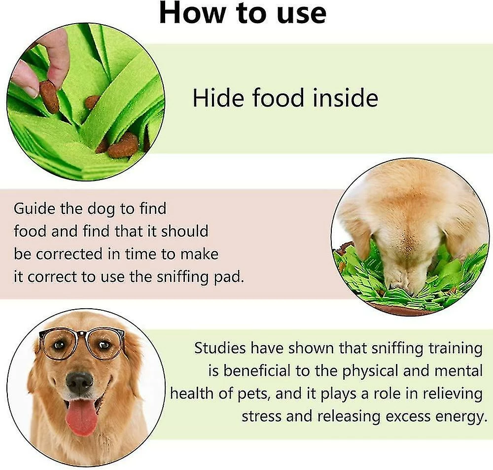 1.Puzzle training mat: This sniffing mat mimics the search for food in grass and fields. Hide the treats or small toy in the snuff mat and let your dogs find it out. It helps train your dog’s sense of smell. Encourage mental and physical exercise while reducing stress.^