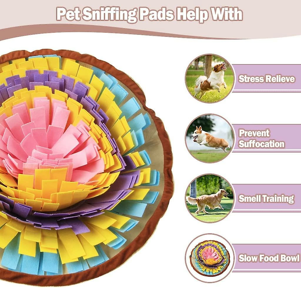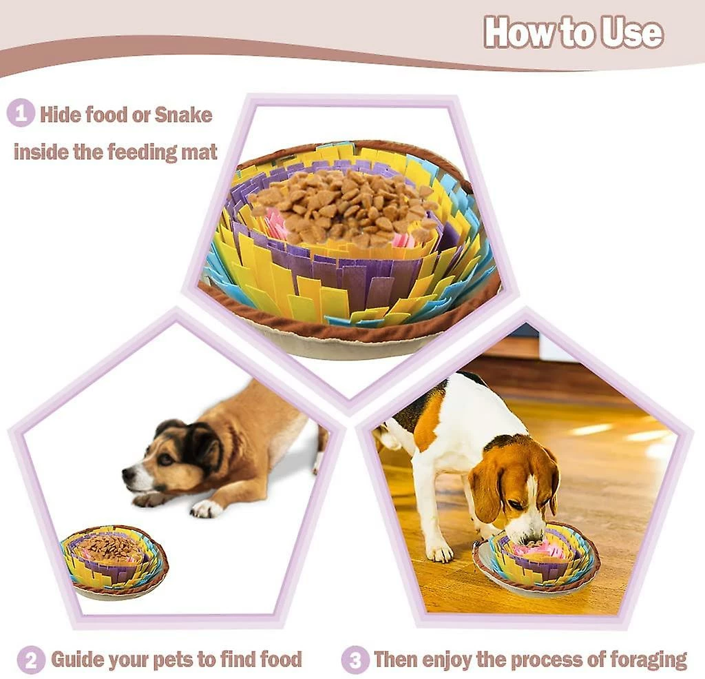 Stimulate Foraging Instinct —- Hide food in the dog sniffle Mat and let your dog to find it out, It stimulates pet’s foraging instinct and satisfies pet’s sensesWashable And Portable feeding mat—-Simply throw this washable dog feeding mat into the washing machine and forget about it, Gently pull the rope to close it and great for indoor and outdoor activity for your petsSlow Eating—-The dog sniffing prevent dogs from swallowing too much food at once and Help dogs to promote food digestion, Diameter: 23.6in / 60cm, suitable for medium/ large dogsSoft And Safe To Sniffle—-High-quality completely safe material prevents red noses and friction from plastic food bowl, This pet activity mat is gentle on your pets sensitive face and bodyInteractive Puzzle Toys Mat —- A great puzzle toy to cause dog’s curiosity, motivate the dog’s play interest, Exercised the dog’s brain and meet their curiosity