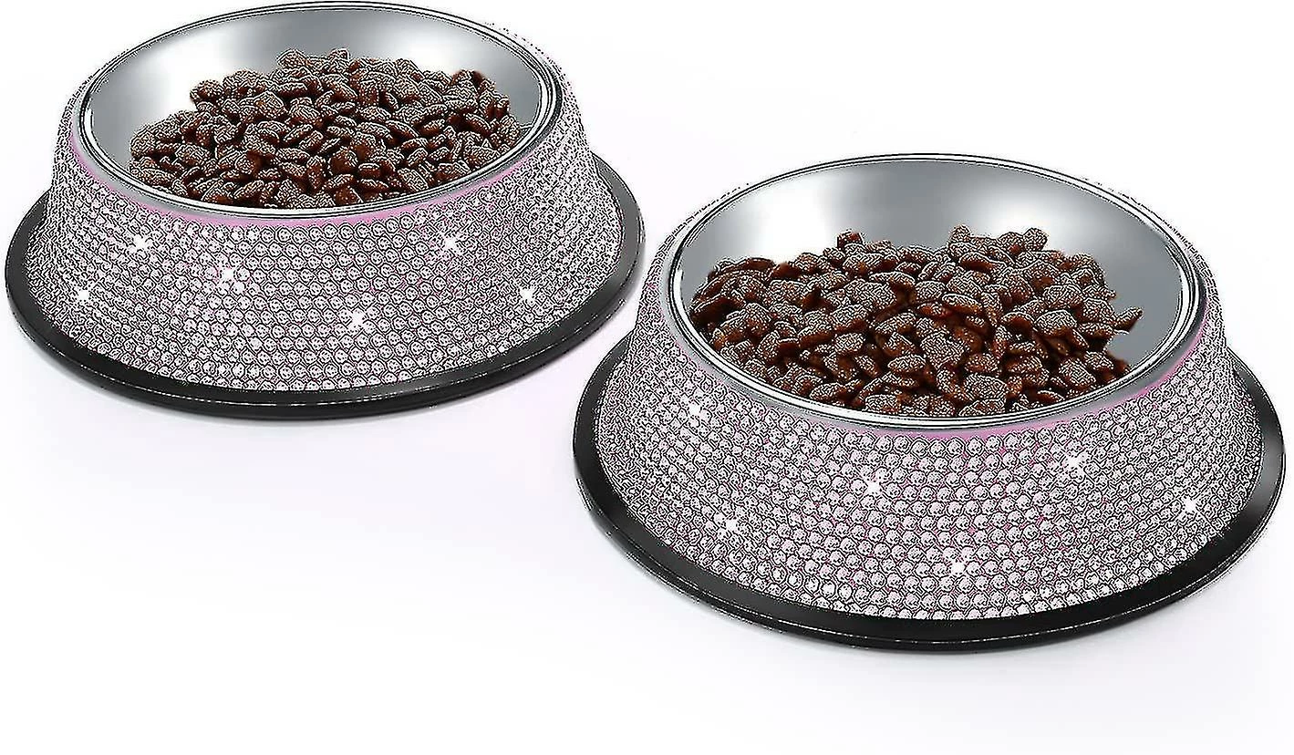 Unbranded Strass Brillant En Acier Inoxydable Pet Bowl Dog Cat Feeder, 640ml-rose