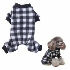 2. [Classic dog four leg pajama design]: dog clothes with legs, round neck, long sleeves, warm design. The dog jumpsuit is suitable for small dogs. This dog pajama has a black and white checkered pattern. This small dog pajama suit is also suitable for wearing at home.