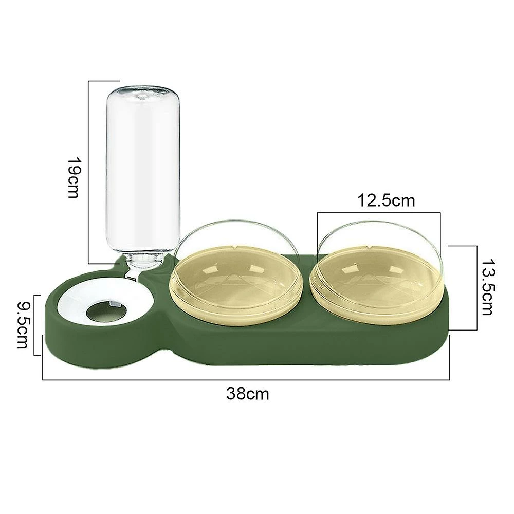 1.The design of the two cat bowls allows multiple pets to eat at the same time.2. Can stably control the water level and automatically supply water.3.The inclined raised bracket design protects the cervical spine, and the rotatable cat bowl provides more space for pets to eat from different directions.4.Detachable parts make it easy to clean.5.Environmentally friendly food-grade PP material, non-toxic and safe for pets.