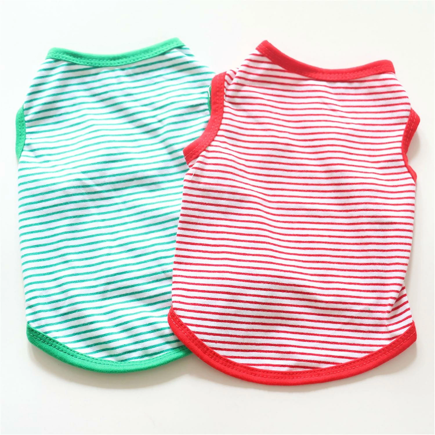 Yskaze 2 Pièces Chiens T-shirt Blank Dog Shirts Pet Summer Striped Shirts Puppy Respirant Outfits Dog Apparel For Cats And Dogs Puppy Party Daily Wear