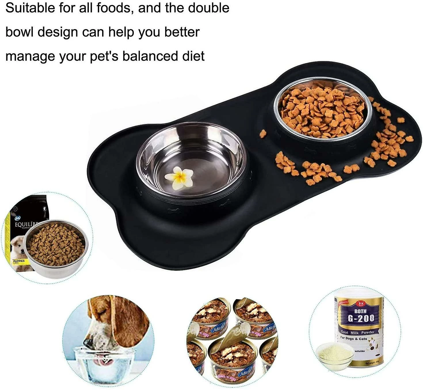 Yuzee Dog Bowl Ensemble De Bol Double Antidérapant En Acier Inoxydable, Avec Tampon En Silicone Anti-déversement, Bol D’eau Détachable Pour Animaux De Compagnie, Utilisé Pour Les Petites Et Moyennes Tailles