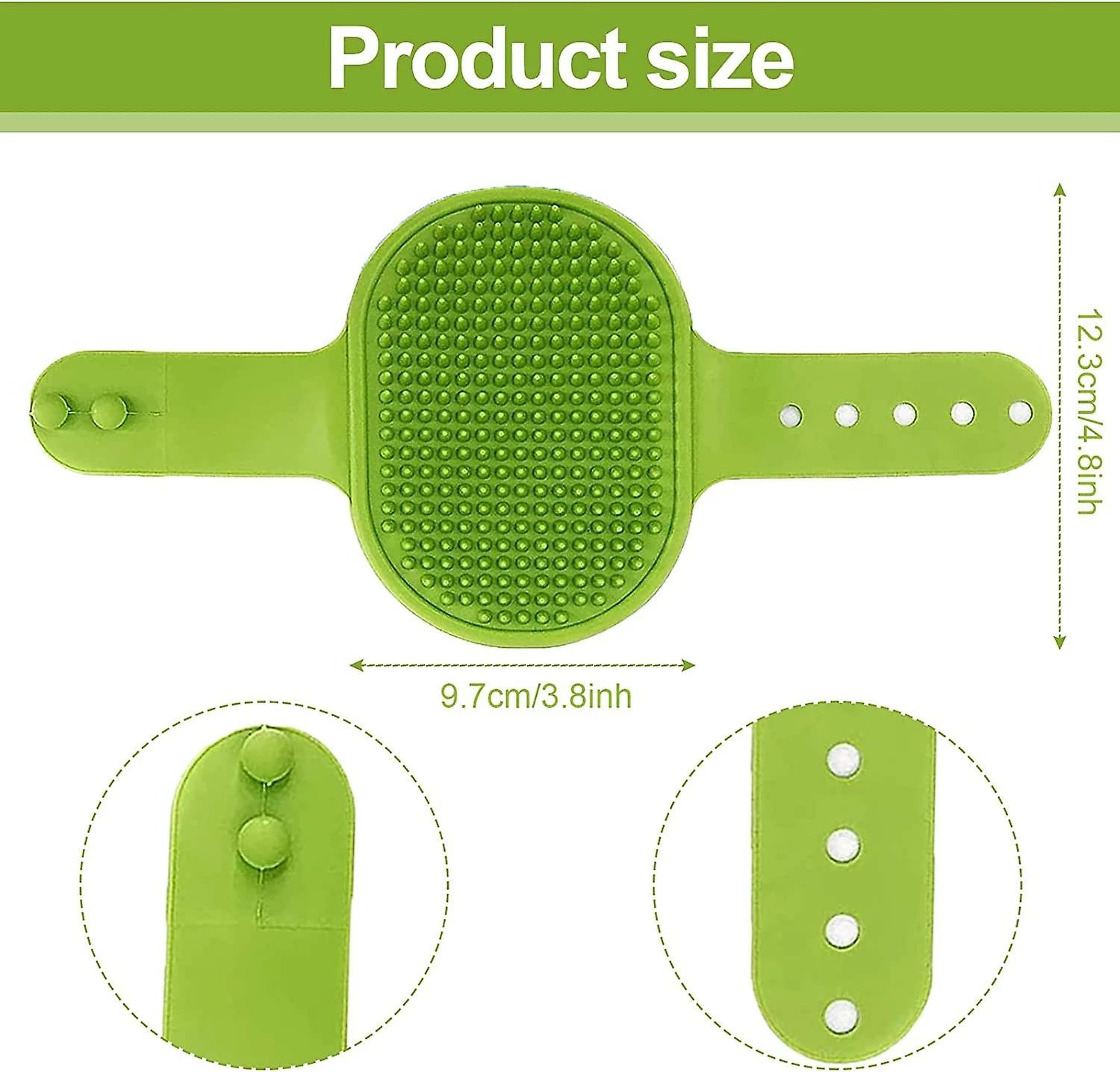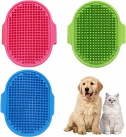 Package includes: 3 pet bath brushes. This pet grooming brush measures approximately 9.7 x 12.3 cm. Pet shampoo brushes are available in blue, green and pink. Make bathing for owner and pet an enjoyable experience